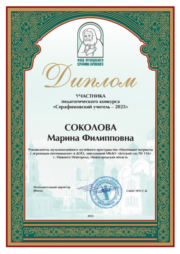 17.06.2025 года в Общественной палате Российской Федерации г. Москва наградили лауреатов и победителей Всероссийского конкурса практик патриотического воспитания в дошкольных образовательных организациях «ТЕРРИТОРИЯ ЮНЫХ: ДЕНЬ ЗАЩИТНИКА ОТЕЧЕСТВА»