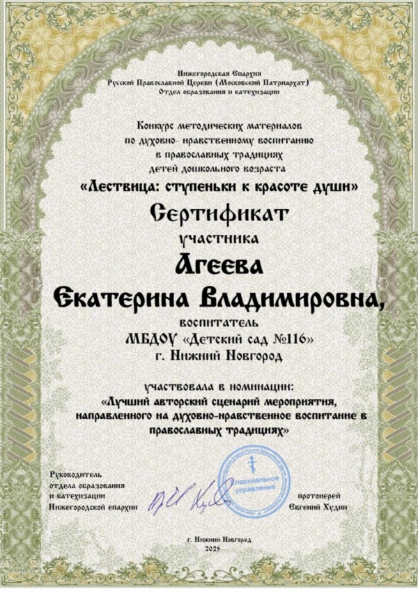 - воспитателя Агееву Екатерину Владимировну