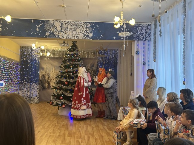Особое волнение у всех вызвала долгожданная встреча с Дедом Морозом и Снегурочкой, которые не только поиграли с ребятами, но и вручили каждому заветный подарок.