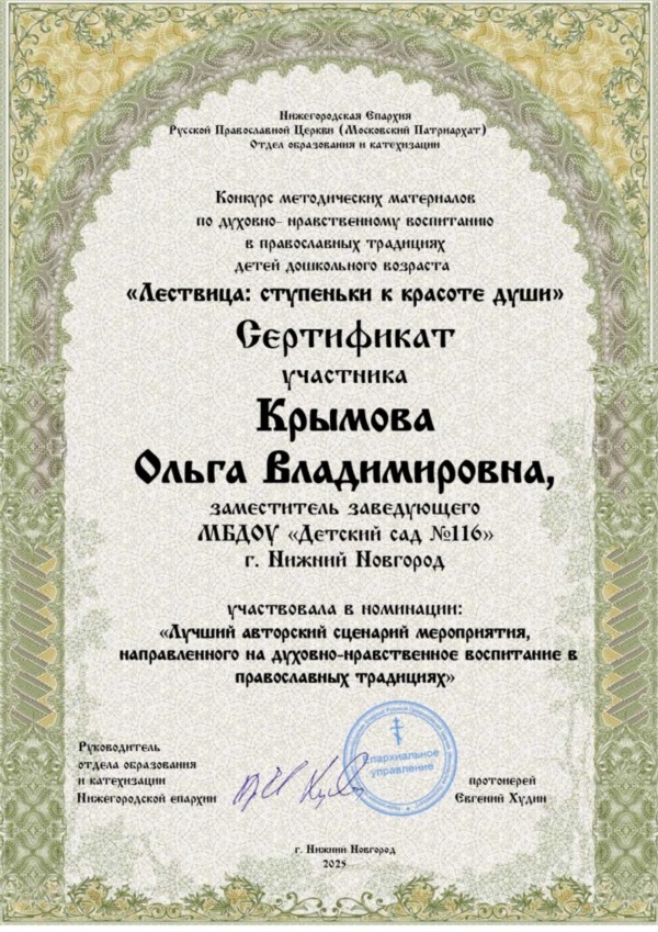 Заместитель заведующего МБДОУ «Детский сад № 116» Крымова Ольга Владимировна стала финалистом Всероссийского форума «Растим гражданина — 2025»