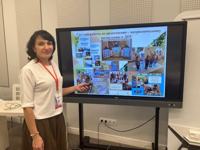 Екатерина Дмитриевна – единственный представитель дошкольных образовательных учреждений, вышедший в финал этого конкурса. Она достойно представила экспертам свою работу, рассказала о важности семьи в формировании основ гражданственности и патриотизма у детей дошкольного возраста, приобщения их к семейным традициям и ценностям.
