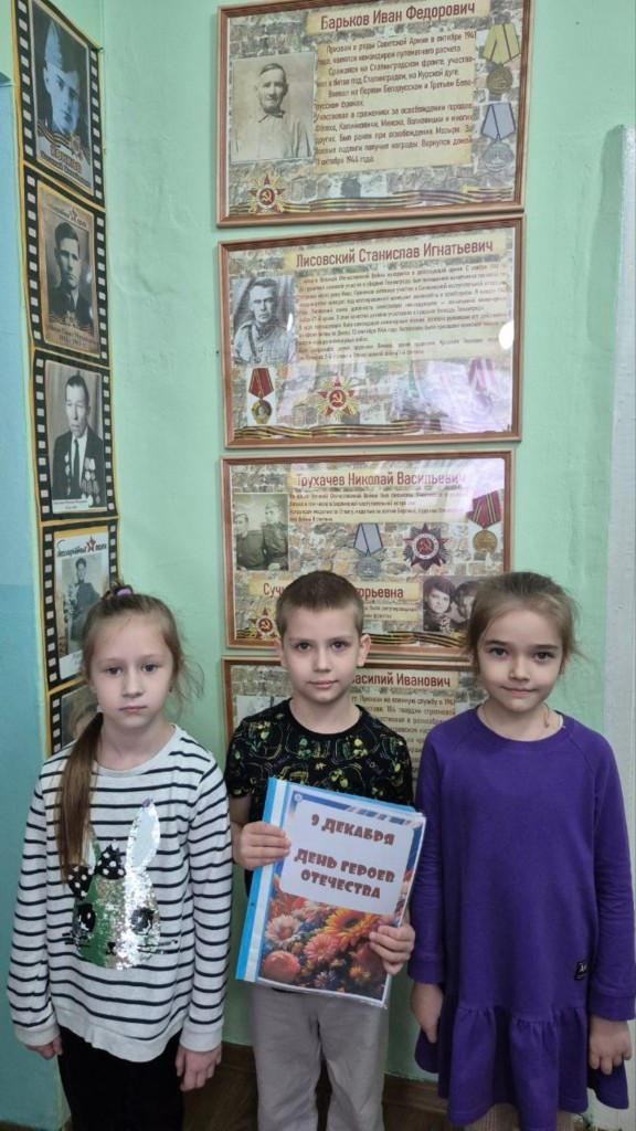 У воспитанников подготовительной группы N 8 прошло познавательное мероприятие в интерактивном музее дошкольного учреждения «Мы помним, мы гордимся!»  В рамках тематической недели , посвященной празднованию Дня Героев Отечества, ребята побывали на экскурсии в мини- музее Великой Отечественной Войны, рассмотрели военный костюм того времени, настоящие ордена и медали защитников Родины, с гордостью показали друг другу портреты своих прадедушек - участников войны, находящиеся на стене славы «Герой моей семьи».  Ребята еще раз увидели, как важно помнить о подвиге Героев, защищающих Родину!