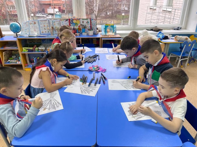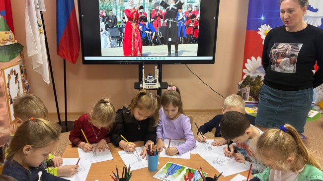 Особую атмосферу создала творческая мастерская — дети нарисовали яркие рисунки о России. Из работ получилась замечательная выставка, где каждый смог показать своё видение родной страны: её символы, природу, города и людей.