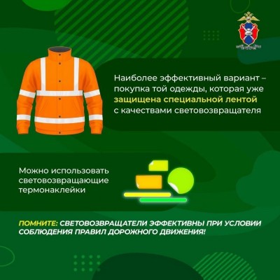 • В темное время суток и в условиях недостаточной видимости необходимо использовать светоотражающие элементы на верхней одежде.
